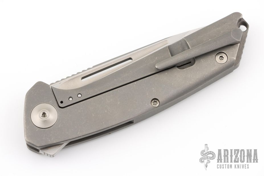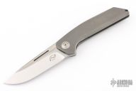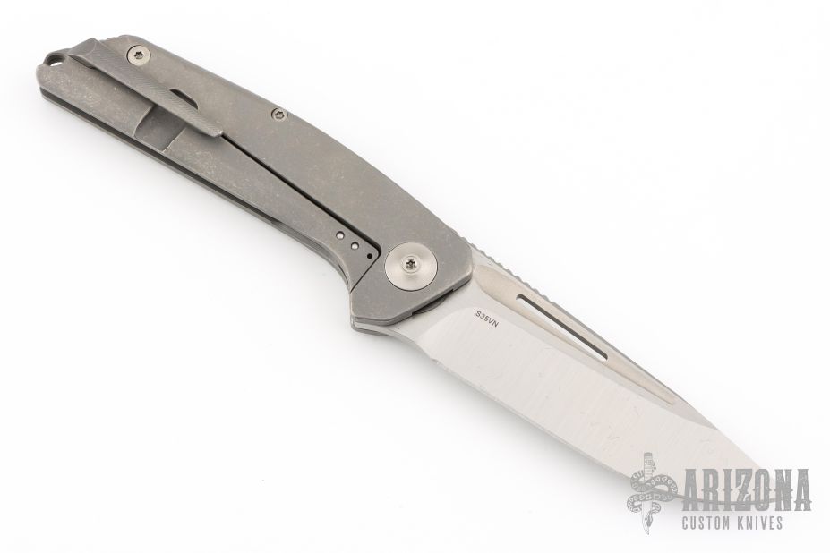 The Endeavour is yet another evolution of a Liong Mah Design superbly executed by Reate Knives. It incorporates a number of innovative features never before seen on a Reate/Mah collaboration. With its super swift/smooth action and utilitarian tactical design, this is one flipper you won't be able to put down. The Endeavour is the first knife to use orange peel textured hardware and a backspacer-less design, both of which were executed perfectly. The 3.75" blade is made from CPM-S35VN stainless steel with hand rubbed satin flats and machine flat ground satin bevels. Liong has the steel shipped all the way from Speciality Metals in Texas to China and back again. This ensures the best quality steel is used and that each piece is uniform in terms of grain structure and hardness. The action using the compact flipper tab or 3D milled slot in the blade is smooth and authoritative, flying out of the blade with the lightest touch. The flipper tab disappears into the frame when deployed which is always a nice touch. You have perfectly executed jimping on the thumb ramp and a finger choil for choking up on for fine detail work. The handles are made from two half-inch billets of titanium with contoured edges, internal lightening pockets, and a very ergonomic shape. The backspacer is integrated into each half of the handle and it incorporates a lanyard hole and jimped thumb ramp in the reverse grip. This design gives the presentation side of the knife a very clean look with only a pivot screw holding everything together. The clip also starts as a half inch billet of titanium and instead of inserting a ball bearing in the front, like a Begg-style clip, David's team milled a ball out of the titanium so it functions very similarly. The clip is blind screwed from the interior of the frame, keeping with the hidden hardware theme of the Endeavour design. It is a fantastic overall knife and one that we love everything about, get one while you can. Specifications Blade Length: 3.75" Cutting Edge: 3.625" Closed Length: 5.0" Overall Length: 8.75" Blade Material: CPM-S35VN Stainless Steel Blade Thickness: 0.157" Blade Style: Drop Point Blade Grind: Flat Blade Finish: Satin Handle Material: Contoured Bead Blasted Titanium, Bronze Handle Thickness: 0.53" Locking Mechanism: Frame Pivot Assembly: Bearings Pocket Clip: Milled Titanium (Tip Up, Right Carry) Weight: 5.3 oz. Designer: Liong Mah Made by Reate Knives in China