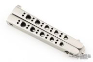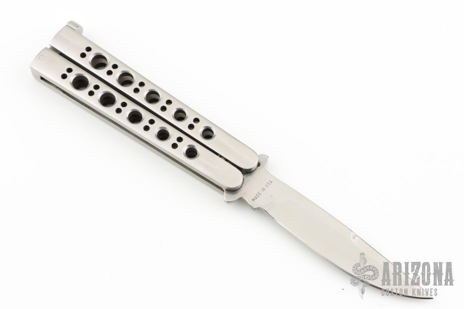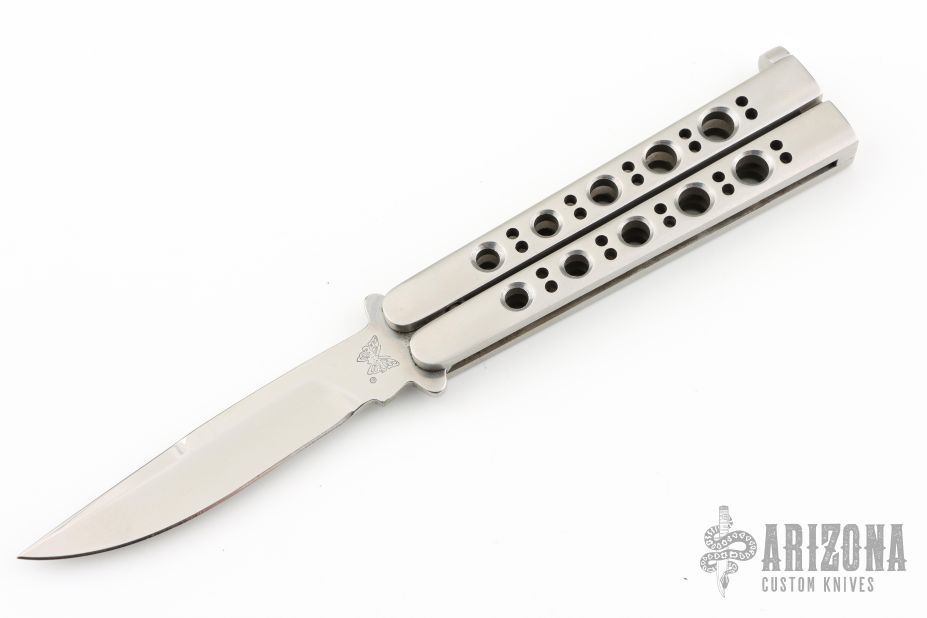 This vintage Model 35 Balisong from benchmade features a polished drop point blade with swedge. The handle is comprised of integral steel construction. T latch on pommel. Comes in Cacoon nylon belt sheath. Has a couple light scuffs, excellent condition otherwise.