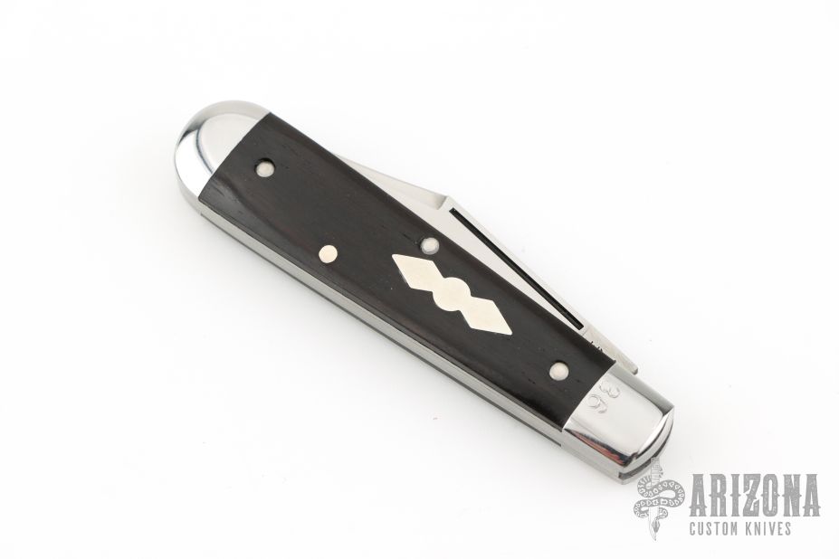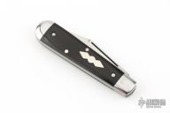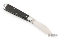 This slipjoint by Great Eastern Cutlery features a satin finished blade with long pull nail nick. The handle has stainless steel bolsters, wood covers with stainless steel liners/pins, steel spring. Has half-stop.  Comes with original tube and paper. Excellent condition.