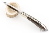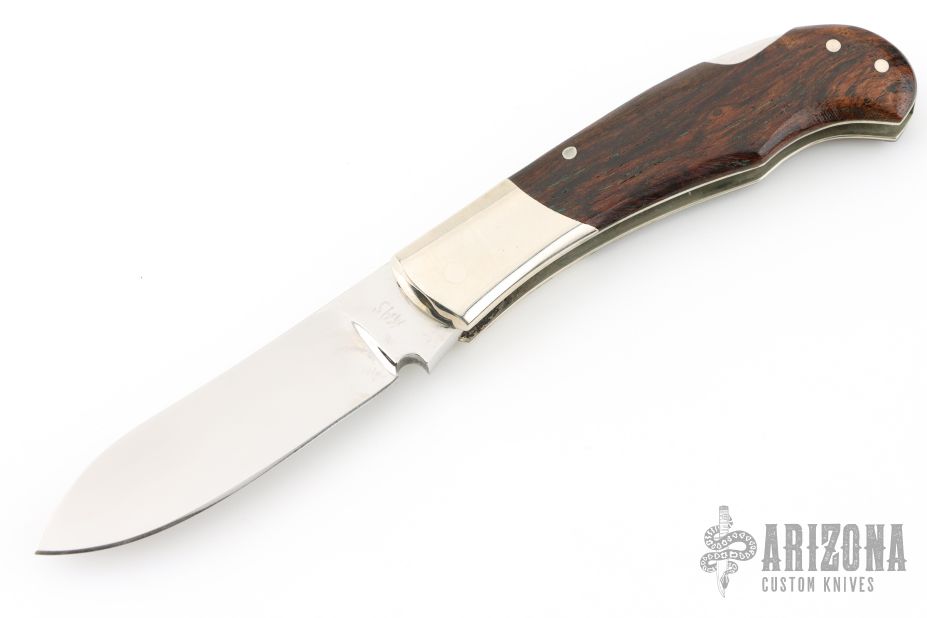 "I've been building knives full time since 1981. I started out making my first knife on the kitchen table with a vise and some files in 1978 at the age of 15. Ever since then it's been a passion and a journey to build a better knife than the last. I primarily make pocket knives with a lockback or front lock mechanism. I have made many other types of knives and am always willing to try something new. I'm most widely known for carving seashell patterns in the bolsters and handle material called scalloping. This type of carving has become a trademark of my work and makes my knives easily recognizable to collectors who have heard of me. I won 11 Blade show awards in 7 consecutive years from 2002 to 2008 including 2 best folder awards, one best folder of the year, 3 best handle designs. I ended competing at the Blade show in 2008 with wining best fixed blade which won best of show. I have also won best folder at the Plaza Invitational and the Chicago show."