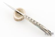 "I've been building knives full time since 1981. I started out making my first knife on the kitchen table with a vise and some files in 1978 at the age of 15. Ever since then it's been a passion and a journey to build a better knife than the last. I primarily make pocket knives with a lockback or front lock mechanism. I have made many other types of knives and am always willing to try something new. I'm most widely known for carving seashell patterns in the bolsters and handle material called scalloping. This type of carving has become a trademark of my work and makes my knives easily recognizable to collectors who have heard of me. I won 11 Blade show awards in 7 consecutive years from 2002 to 2008 including 2 best folder awards, one best folder of the year, 3 best handle designs. I ended competing at the Blade show in 2008 with wining best fixed blade which won best of show. I have also won best folder at the Plaza Invitational and the Chicago show."