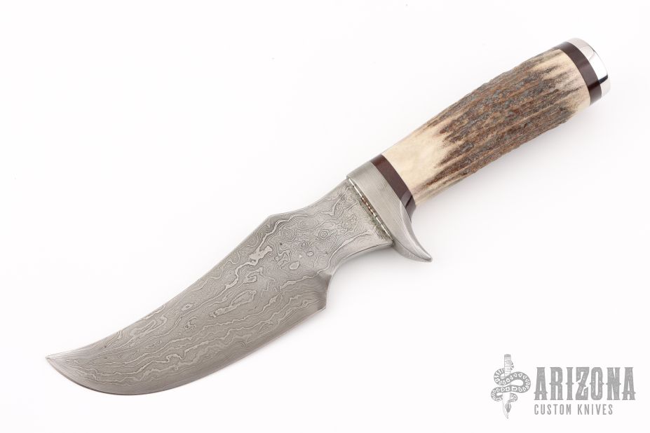 "I started making knives in 1970, and in 1976, I joined the Knifemaker's Guild. I make all types of knives from: folders, fighters, hunters and fancy collector pieces. I am a voting member of the Knifemakers Guild, the American Bladesmith Society (Journeyman Smith), the Ocmulgee Blacksmith's Guild, the Flint River Knife Club and the National Rifle Association. My first knives were mostly hunting knives with an occasional Bowie thrown in. I use both the stock removal and forging methods in making knives. I flat grind and hollow grind. I prefer to use stainless tool steel for all of my non-forged blades with either a flat or hollow ground surface according to my specific application. My best edge holding stainless tool steel is 420-V, second is 440-V. These two steels are very difficult to work with, but they provide superior edge holding and corrosion resistance (traits that I demand in my finished designs). My favorite stainless tool steel is 154-CM. It holds an edge very well and takes a lot of abuse. I also like to work with Damascus steel, both stainless and carbon. I prefer the stainless Damascus due to its corrosion resistance. I do not make my own Damascus. I purchase it from the top makers around the world. I do my own heat-treating and then send the blades to a commercial firm for 24-hour cryogenic treatment. For handle materials, I use a variety of materials both natural and man-made; almost anything you can imagine." Rade passed away in 2014.