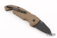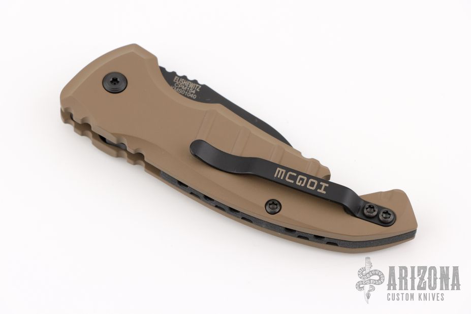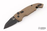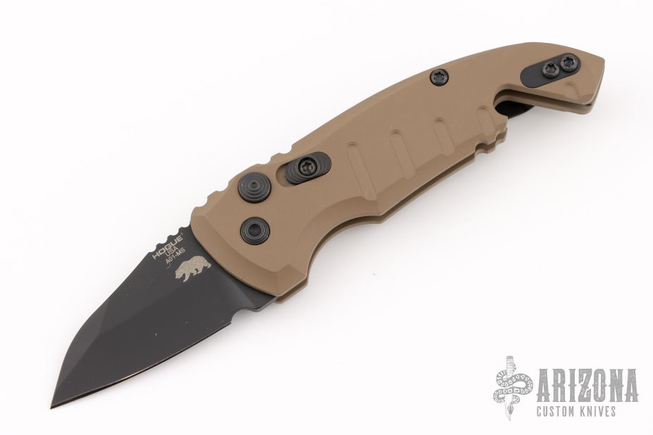 This A01 Microswitch model sports a FDE anodized aluminum handle and a 1.8" black wharncliffe blade.