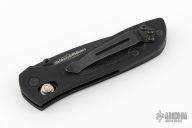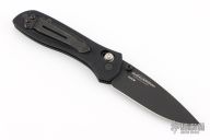 This 707 from Benchmade features a black spear point blade with dual thumbstuds and a false top edge. The handle has anodized aluminum scales and black G-10 inserts, stainless steel liners, and a black backspacer. Tip up reversible stainless steel clip. Comes with original box, papers, and pouch. Has a couple light scuffs on the frame, and some scratches on the clip. Excellent condition otherwise.