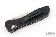 This 707 from Benchmade features a satin finished spear point blade with dual thumbstuds, serrations and a false top edge. The handle has anodized aluminum scales and black G-10 inserts, stainless steel liners, and a black backspacer. Tip up reversible stainless steel clip. Comes with original box and papers. Has some scratches on the clip. Excellent condition.