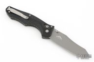 This Contego from Benchmade features a grey coated plain edged blade. Black G-10 handle textured in the center and grooved on edges for a better grip. Carbide glass breaker on pommel. Nice function and strong lock up. Comes with original box, pouch, and papers. Excellent condition.
