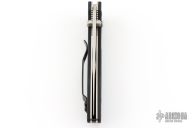 This 707 from Benchmade features a satin finished spear point blade with dual thumbstuds and a false top edge. The handle has anodized aluminum scales and black G-10 inserts, stainless steel liners, and a black backspacer. Tip up reversible stainless steel clip. Comes with original box, papers, and drawstring pouch. Has some scratches on the clip. Excellent condition.
