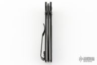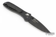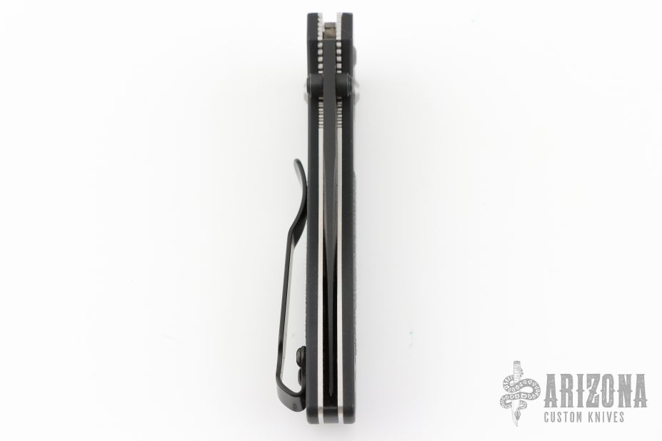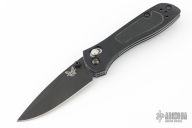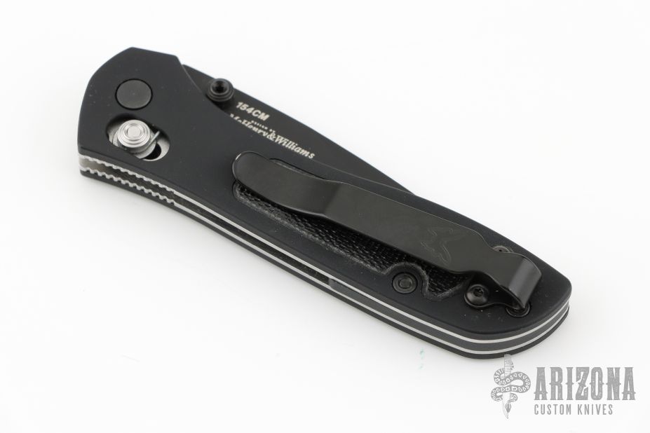 This 707 from Benchmade features a black spear point blade with dual thumbstuds and a false top edge. The handle has anodized aluminum scales and black G-10 inserts, stainless steel liners, and a black backspacer. Tip up reversible stainless steel deep carry clip. Comes with original box, and papers. Has some light scratches on the body. Excellent condition.