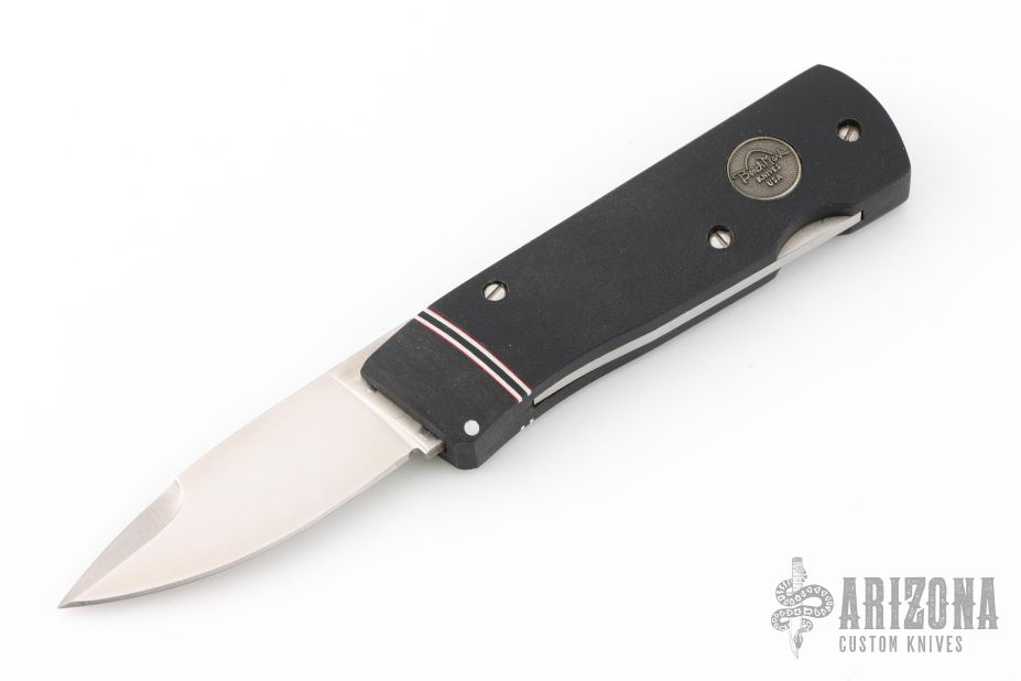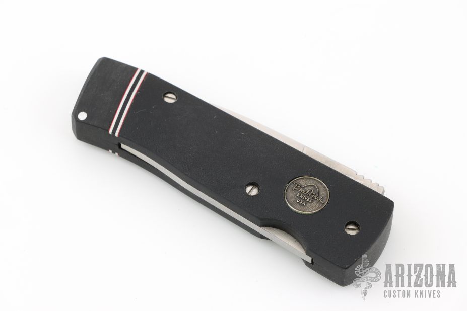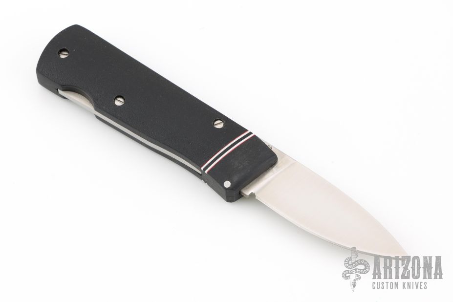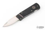 This Rolox Viper Lightweight Sliding Belly Lock has a satin finished stainless steel drop/ spear point blade with false top edge and notched thumb rest. Handle is black composite, and stainless steel belly/ lock spacer. Comes with original box, nylon belt sheath, and papers. Excellent condition.