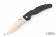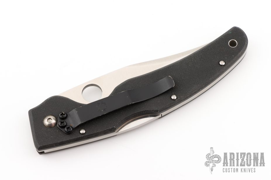 This Renegade by Spyderco features a satin finished clip point blade with a fully serrated edge and thumbhole. The handle has a black G-10 frame with a tip down SS clip. Has a few light scuffs and scratches, otherwise Excellent Condition.