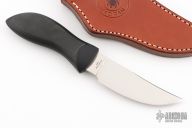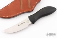 Spyderco is privileged to offer a production fixed-blade collaboration patterned in Bill Moran's ageless tradition. We've made it available in two distinct blade shapes. The FB02 has a drop-point shape while the FB01 (Pictured) has an upswept Bowie-style blade. Both blades are flat-ground VG-10 and carry Bill's signature. They are tapered, starting thick where the blade joins the handle, thinning down the spine to a fine, uniformly ground tip. In the hand the knife conveys a unique feeling of balance, called by some a sweet spot. The sweet spot is due to the blade and handle being comparable in weight. This balance transfers into a feeling of steady control over the cutting edge. The FRN handle three-dimensionally fills out the palm and is inlayed with a panel of non-sliding Kraton. Highly recommended for hunting and camping both models come in a Leather sheath with belt loop
