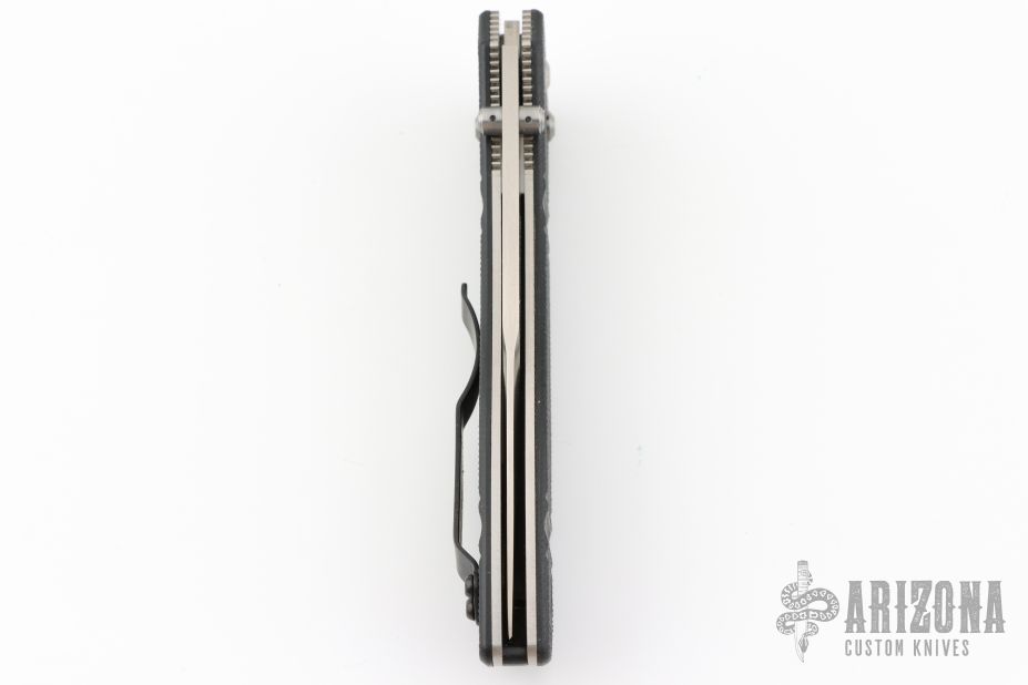 This 710 McHenry & Williams designed folder by Bencmade features a satin finished blade with swede, partial serrations, and dual thumb studs. The handle has black G10 scales over stainless steel liners and black polymer backspacer. Lanyard hole in pommel and black coated stainless steel tip down clip is reversible for right or left hand carry. Comes with original box and papers. Has some light scuffs, excellent condition otherwise.