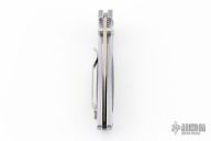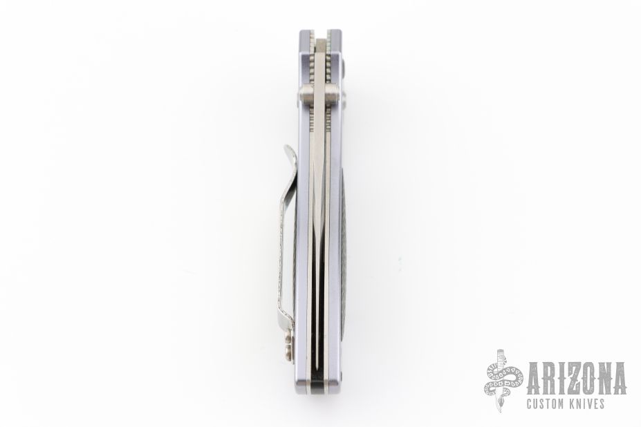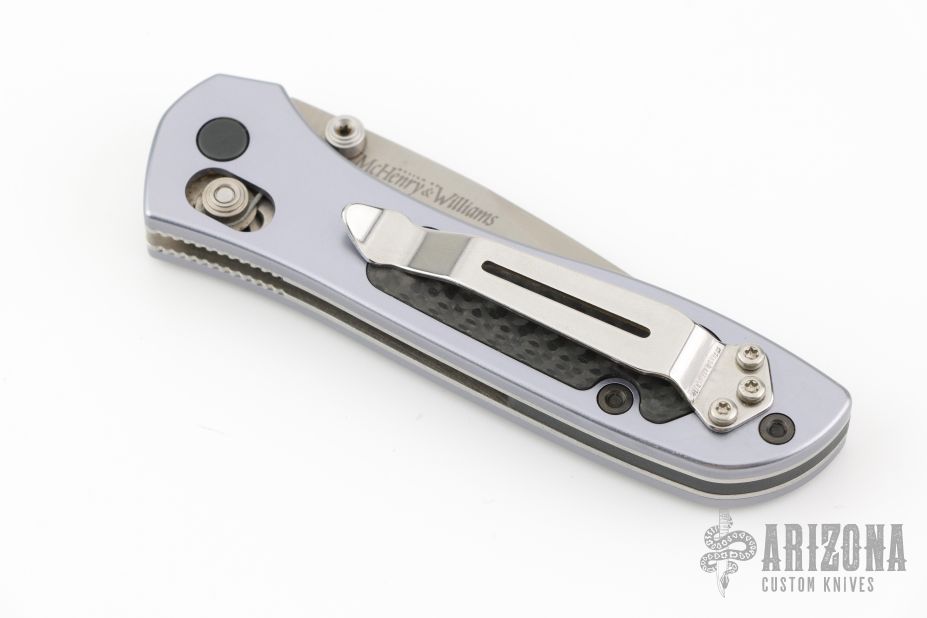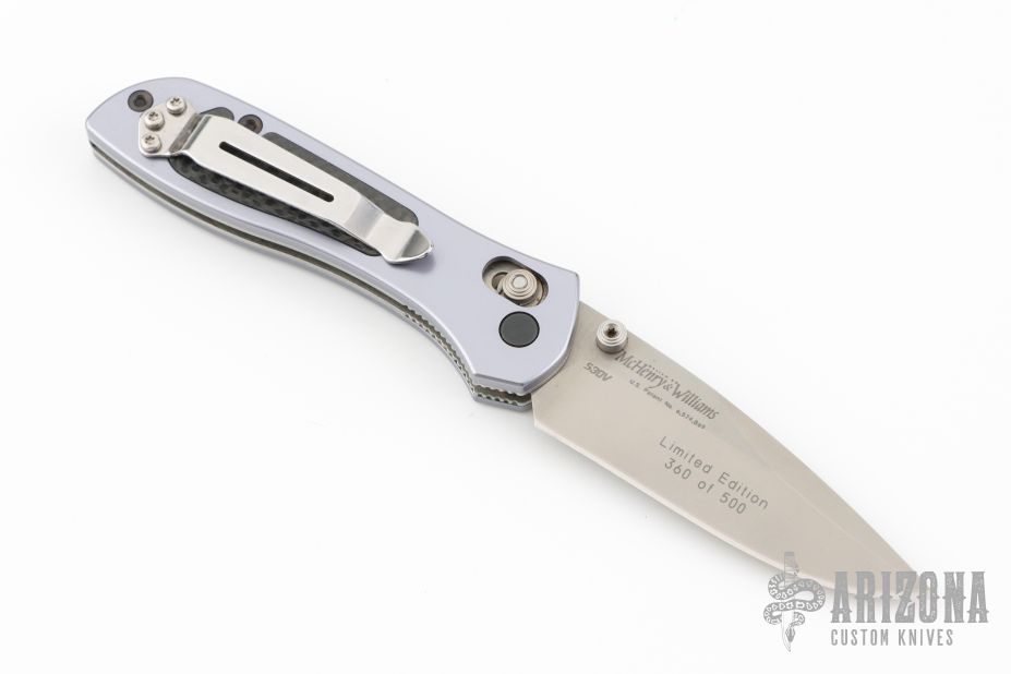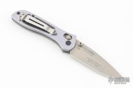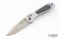 This Sequel by Benchmade features a satin finished drop point blade with swedge, and dual thumb studs. The handle is comprised of machined and anodized aluminum scales with carbon fiber inlays, over stainless steel liners and black backstrap. Polished reversible tip up clip. Includes original box, pouch and papers. Has a couple light scuffs, otherwise Excellent condition.