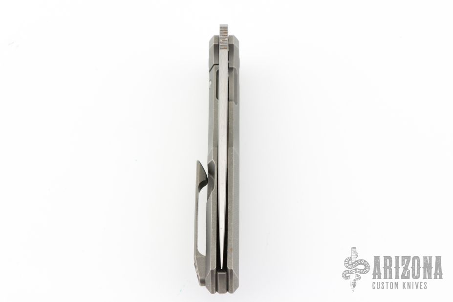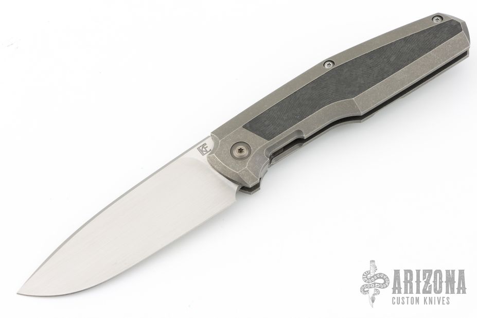 This linerlock was designed by Philippe Jourget and manufactured by CKF. This knife features a hand rub satin finished drop point blade with a filed thumbrest. The handle is composed of titanium with carbon fiber inlay. Titanium tip up pocket clip and backbar. Includes a padded Velcro case, COA and extra hardware. Has some light scuffs, otherwise Excellent condition. #171 - 9/21