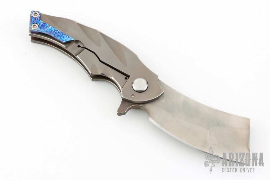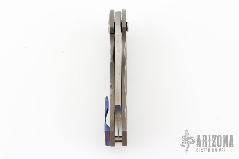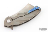 This Varangian flipper by Scorpion 6 Knives features a Loki finished multi-ground blade with a flipper. The handle has a two-tone titanium frame with a Mokuti tip up clip. Nice detent, lockup and blade seating. Includes the original box and papers.  S/N 015. Has some scuffs/scratches on the frame/clip, otherwise excellent condition.