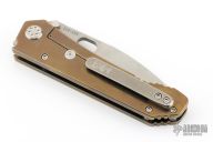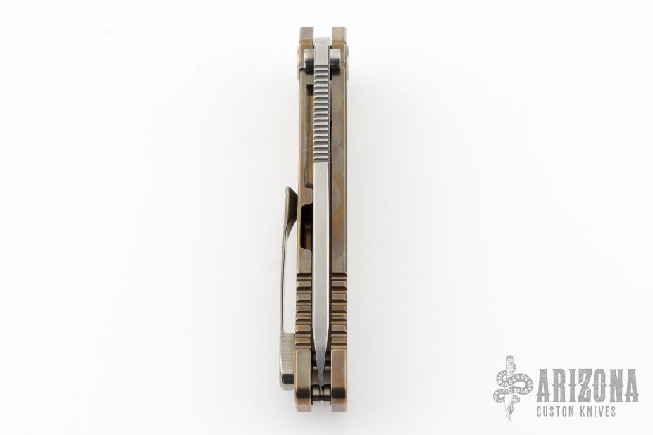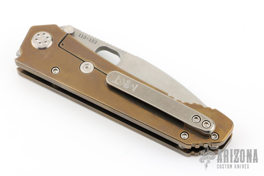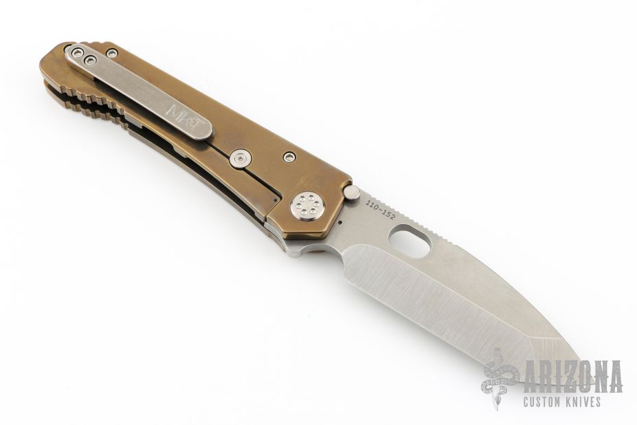 This 187 DPT Drop Point by Medford Knife and Tool features a satin finished tanto blade with notched thumbrest and thumbhole. The handle has a anodized titanium frame and clip. Nice blade seating, detent and lockup. Comes with box, papers and padded zippered case.  Excellent Condition.