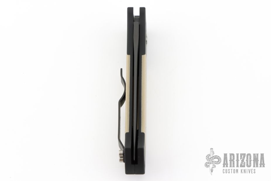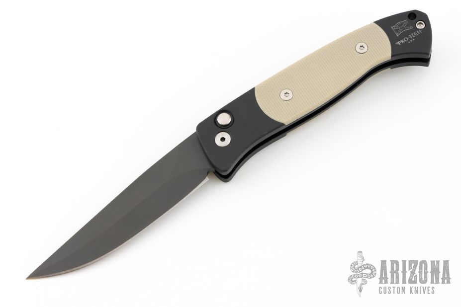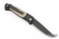 This Collaboration between Walter Brend and Pro-Tech, the Brend Auto 2 is a smaller version of the Auto 1. Carries easily in the pocket or may be clipped to the pocket or belt. Very nice clip point style blade and as always with Pro-Tech, fast solid action. Part of the First Production run, serial numbered 256, as stamped on the backside of the frame. Black blade, black aluminum frame with tan G-10 inlays, black tip up stainless steel clip. Comes with original box and papers. Excellent condition.