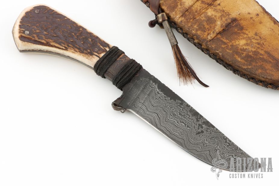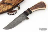 Home Products Winkler Knives Hand Forged "Old DW Belt Knife" Damascus Blade Elk Antler w/ Copper Ferrule