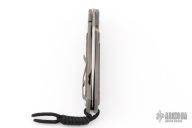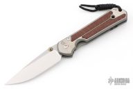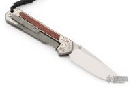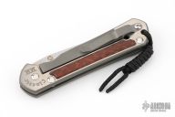 This Large Sebenza Classic from Chris Reeve Knives features a two tone blade with tumbled flats and satin grinds. The blade has a single anodized titanium thumb stud with notched thumb ramp. The handle is comprised of a titanium frame with snakewood inlays over a single anodized barrel spacer. Titanium tip up clip. Includes original box, tool and paperwork dated 9/11/2006. Has some light scuffs and scratches, great condition otherwise.