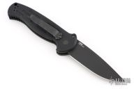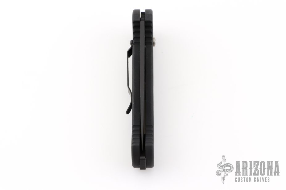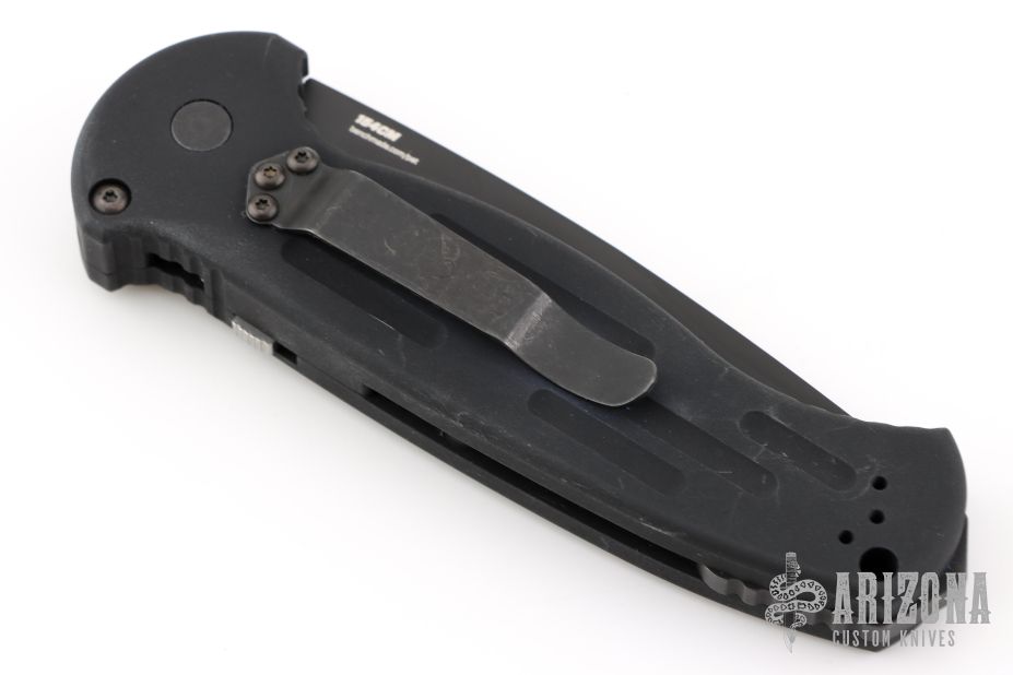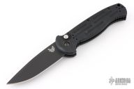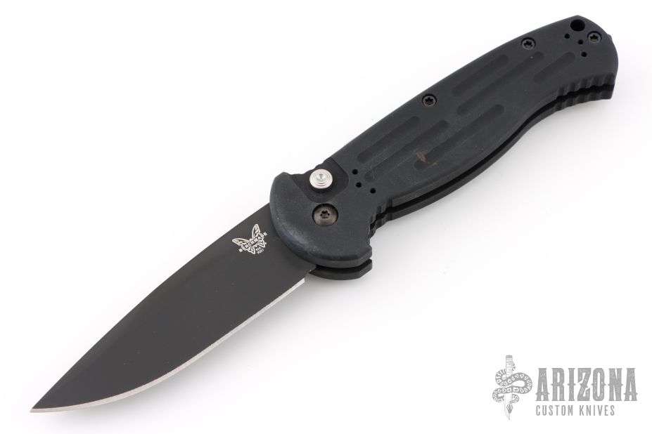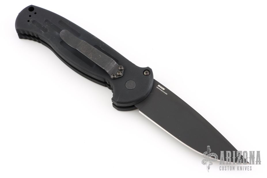 This 9051 AFO II auto from Benchmade has a black spear point blade with false top edge. Black anodized aluminum handle. Integrated safety system. Black stainless steel clip - 4 way reversible, and lanyard hole. Has some light scuffs and some spots on the frame. Great condition otherwise.