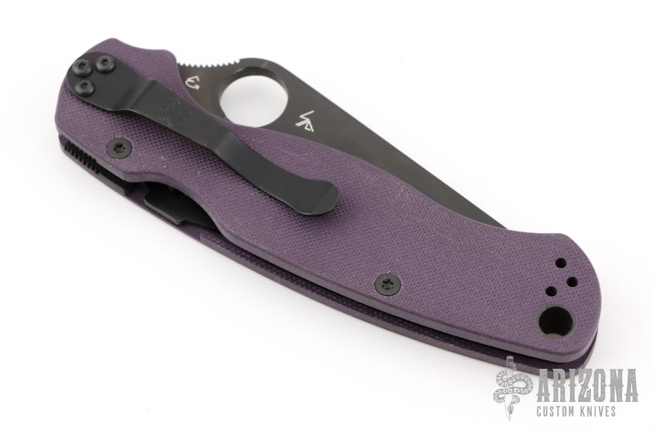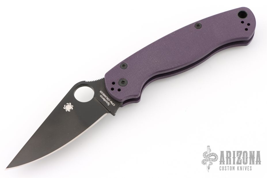DLT Trading is bringing a new G-10 color and blade steel combination together with our exclusive release of the Paramilitary 2 with purple G-10 scales and black DLC coated CPM Cru-Wear blade. Not only does the black and purple color combination look good, the DLC coated blade adds corrosion protection since this is not a stainless steel blade material. We do expect this to sell quickly so grab one or two for yourself now.