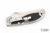 This Stretch lock back folding knife by Spyderco features a satin finished blade with a thumbhole and notched thumbrest. The handle has a stainless steel frame with rubber inlays and 4-way reversible tip down clip. Has some scuffs and scratches, great condition for its age and otherwise.