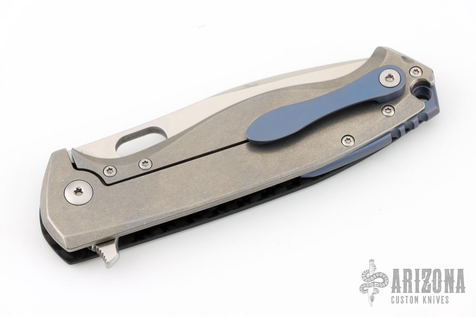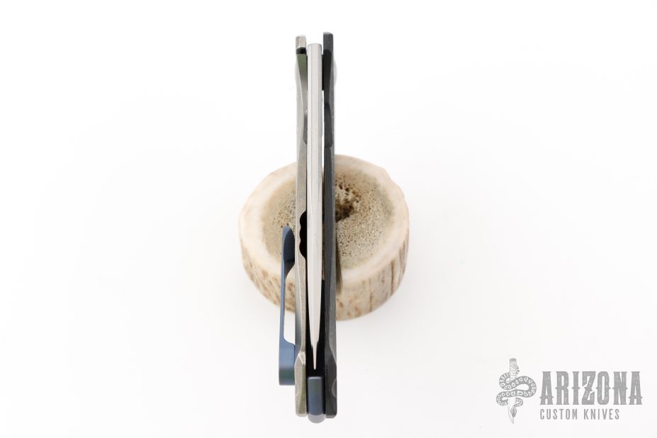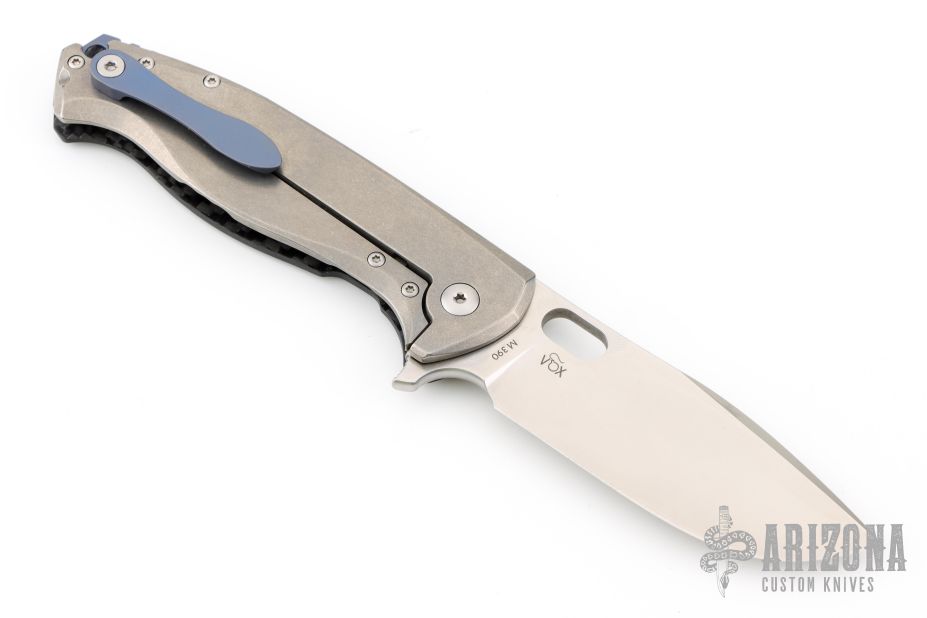 This Fortis by Viper Knives is a Vox Design, it features a satin finished drop point blade with thumbhole and flipper. The handle has a carbon fiber and tumbled titanium frame with anodized titanium tip up clip and backspacer, lanyard hole at the butt. Nice detent, lockup and blade seating. Has a couple light scuffs, excellent condition.
