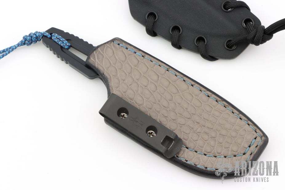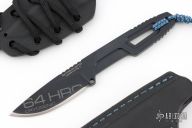 This Satre by Extrema Ratio features a black finished blade and integral handle, .190" blade stock and .891" blade depth. Comes with original box, card, and kydex neck sheath. Also includes Pirtle Leather sheath with Alligator panel. Excellent condition.