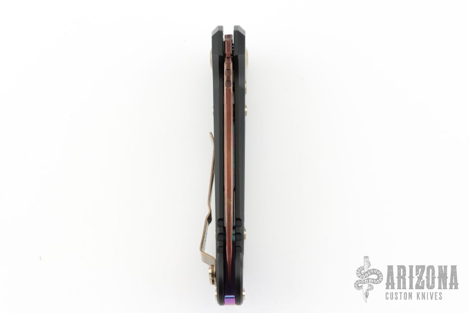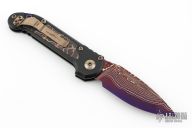 LUDT Clip Point Marfione Select Blued Baker Forge Coppermai Damascus Hefted Alloy w/ Protech Composites Livewire Carbon Fiber Inlay Bronze Hard Cut Hardware & Purple Haze Titanium Accent
