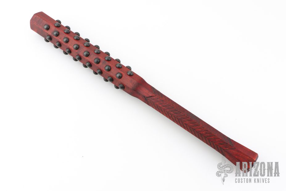 Tetsubo War Club by Ryan Johnson. Gold Point Forge, full hickory construction, hand inlaid rivets. Heavy and 1.625" in diameter. Excellent condition.
