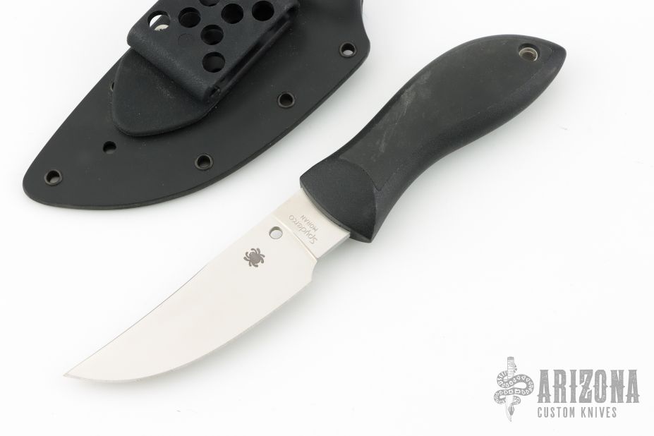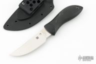 Spyderco is privileged to offer a production fixed-blade collaboration patterned in Bill Moran's ageless tradition. We've made it available in two distinct blade shapes. The FB02 (pictured) has a drop-point shape while the FB01 has an upswept Bowie-style blade. Both blades are flat-ground VG-10 and carry Bill's signature. They are tapered, starting thick where the blade joins the handle, thinning down the spine to a fine, uniformly ground tip. In the hand the knife conveys a unique feeling of balance, called by some a sweet spot. The sweet spot is due to the blade and handle being comparable in weight. This balance transfers into a feeling of steady control over the cutting edge. The FRN handle three-dimensionally fills out the palm and is inlayed with a panel of non-sliding Kraton. Highly recommended for hunting and camping.