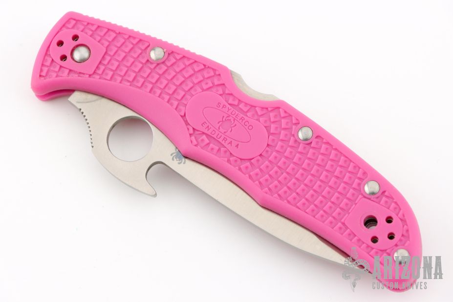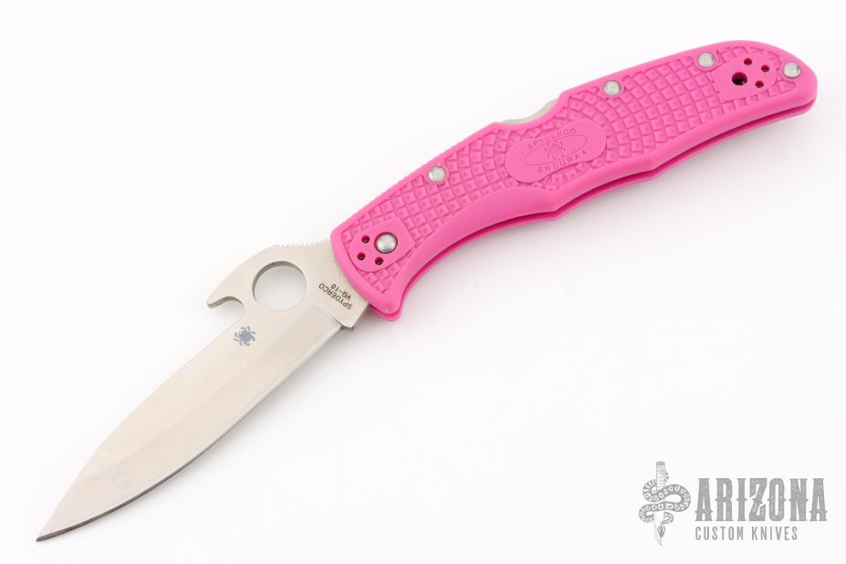The Endura knife features a molded FRN (fiberglass reinforced nylon) handle with Bi-Directional texturing for traction and improved ergonomics. The handle is strengthened with dual skeletonized stainless steel liners that make an anchor for all external and internal components to attach while adding sturdiness and rigidity. Phosphor bronze bushings on the blade pivot smooth out the open/close action. The pocket clip is four-way reversible for tip-up/down, left- or right-handed carry. The blade is premium VG-10 stainless steel from Seki-City Japan and has Spyderco's easy to use thumb hole for simple, efficient one-hand opening of use the blade-opening feature made popular and patented by Ernest Emerson of Emerson Knives.