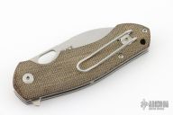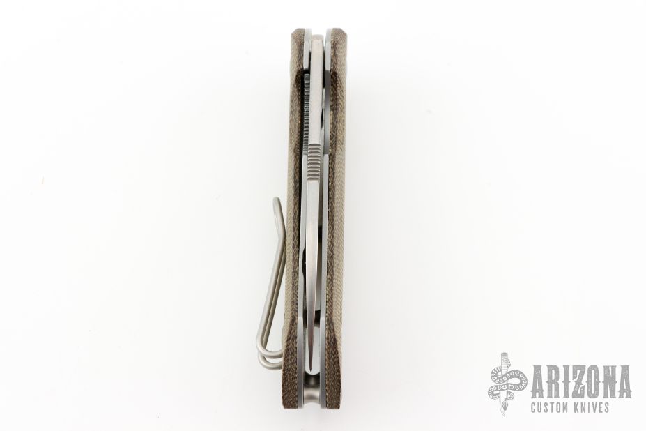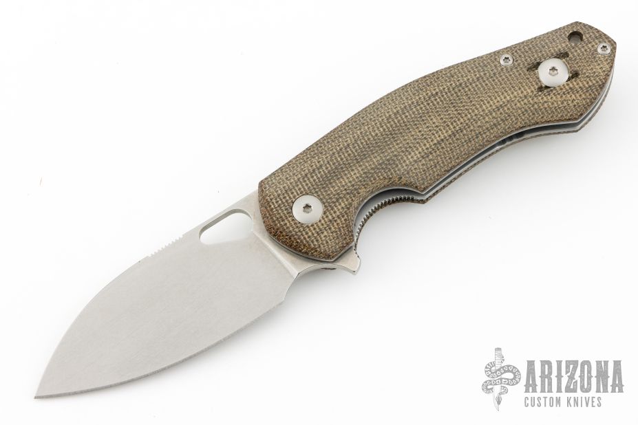 The handle fills even larger hands well, due to the nicely rounded scales and good ergonomics. Speaking of the handle, we chose to blast the black G10 and canvas Micarta for grippyness and great feel.