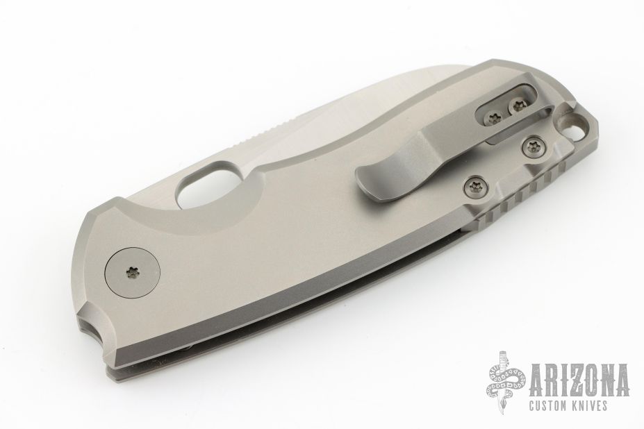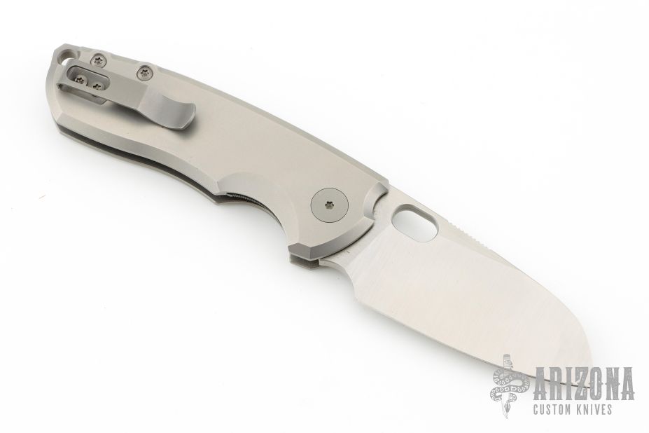 This F5.5 by Urban EDC features a hand rub satin finished sheepsfoot blade with thumbhole and notched thumbrest. The handle has a bead blasted titanium frame with a tip up pocket clip. Has a couple light scuffs, excellent condition.