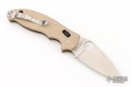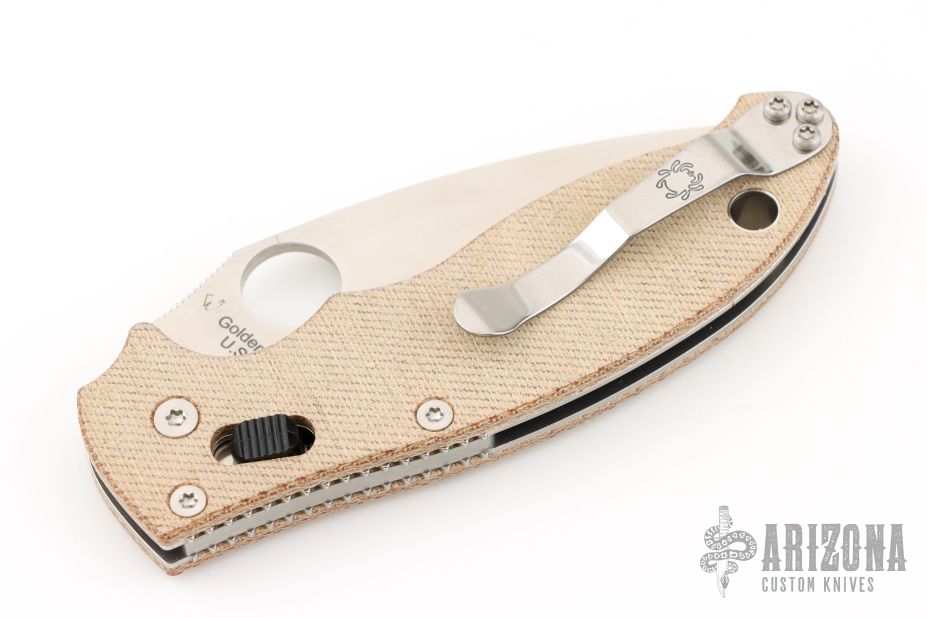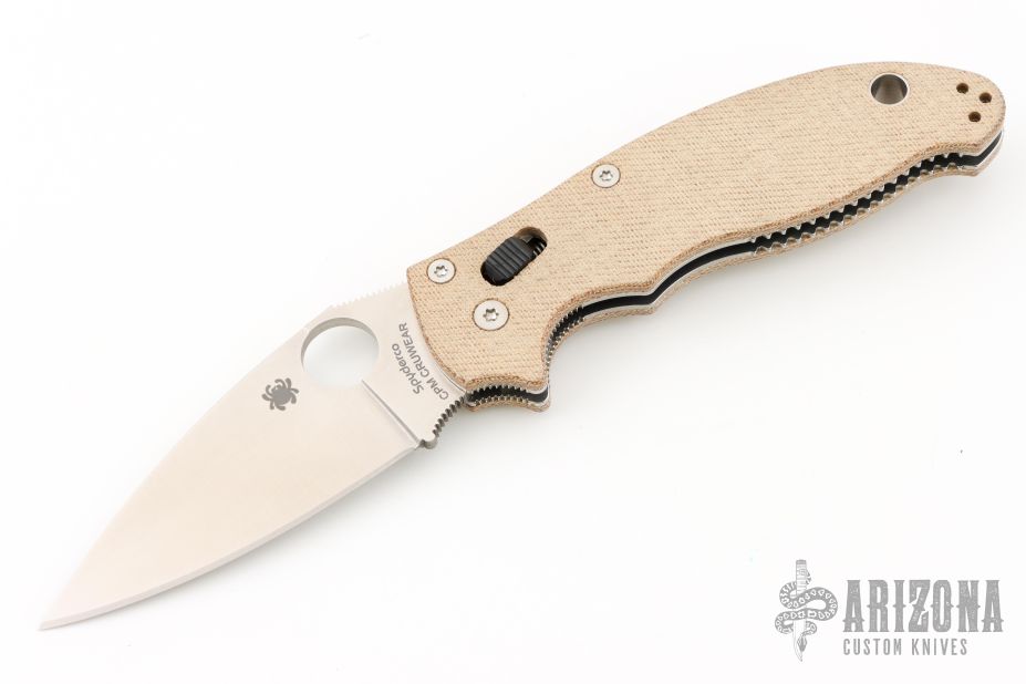 This Manix 2's handle adorns brown Canvas Micarta scales that are the signature color of Spyderco's elite family of CruWear knives. To ensure convenient carry and instant access, the handle includes a reversible spring steel clip that mounts to either side of the handle butt for ambidextrous tip-up carry. It also features an oversized lined lanyard hole for easy attachment of fobs and lanyards.