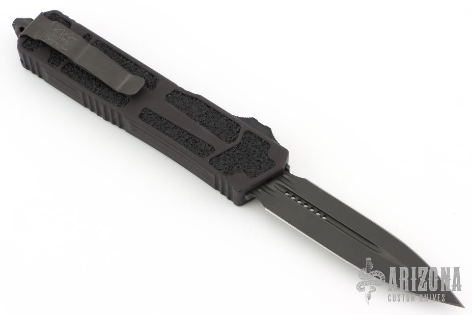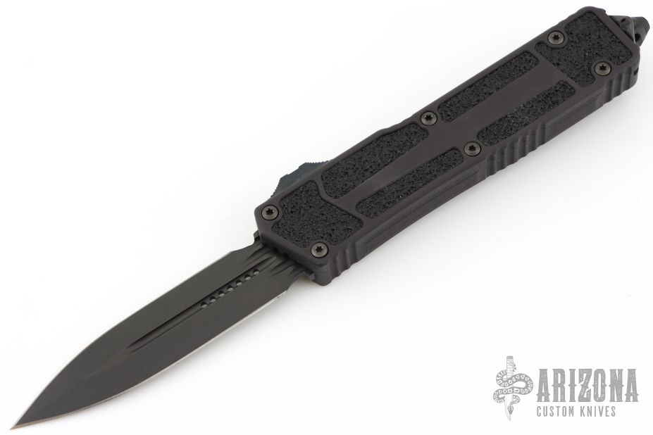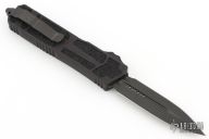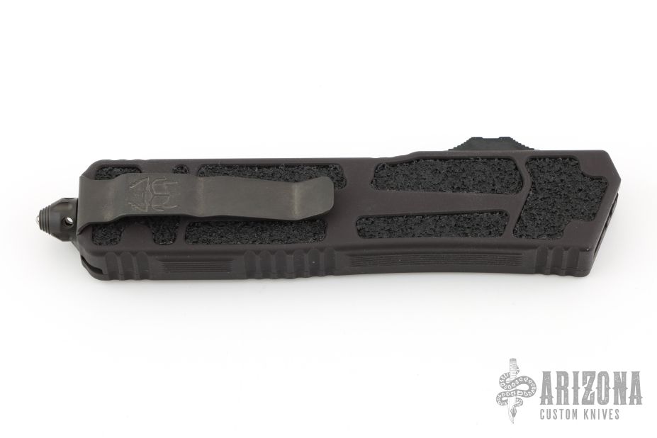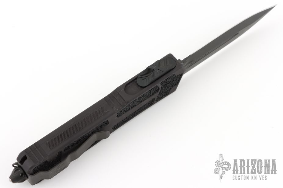 The Microtech Scarab II is a high quality tactical out-the-front knife, based on the original Microtech Ultratech design. Built to withstand the extreme, the Scarab II excels in high-intensity covert operations. The Scarab II is designed for a broad spectrum of utility and close quarter combat applications for use by qualified law enforcement, military, and government agency operatives. The Scarab II is fabricated to the highest possible standards to assure reliability and safety with its use. Featuring a one-handed, open and close, dual-action out-the-front (OTF) design, and double edge blade. The Scarab is produced with a large easy-to-grip handle that contains non-slip grip inlays on both sides. Comes with original box and papers. Has a few scuffs on the frame. Excellent condition.