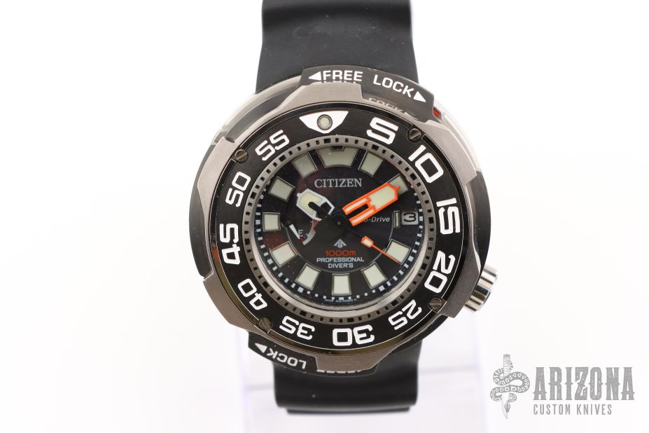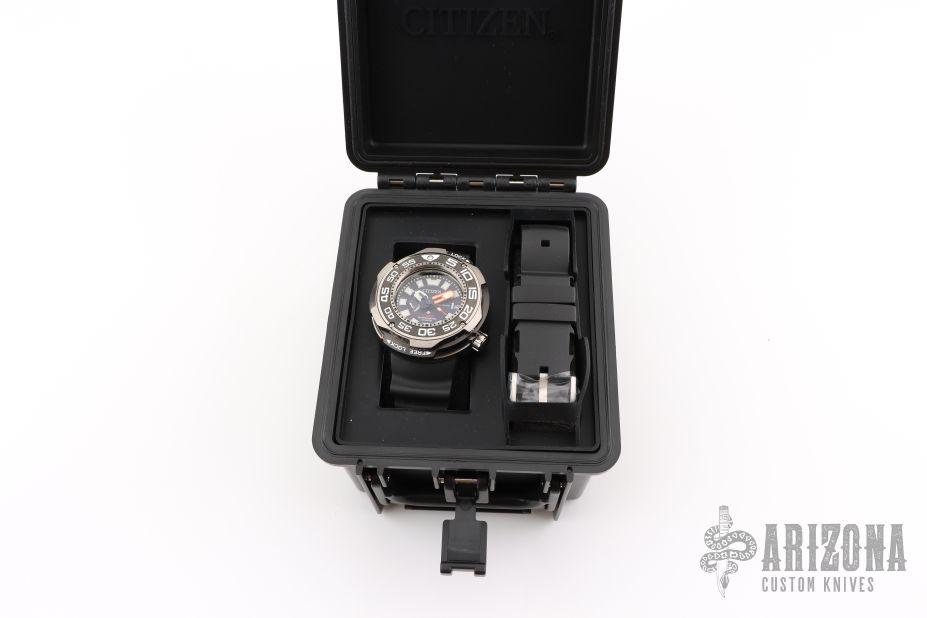 Ready, Set, Dive. Take your timepiece to new depths wearing the Promaster Professional Diver 1000M. This brand new dive watch from Citizen contains all the necessities for an avid diver. Featured with black polyurethane strap, Super Titanium™ case with black dial, ISO compliant, helium release valve, power reserve indicator and one-way rotating elapsed time bezel with lock. Featuring our Eco-Drive technology – powered by light, any light. Never needs a battery. Caliber number J210.