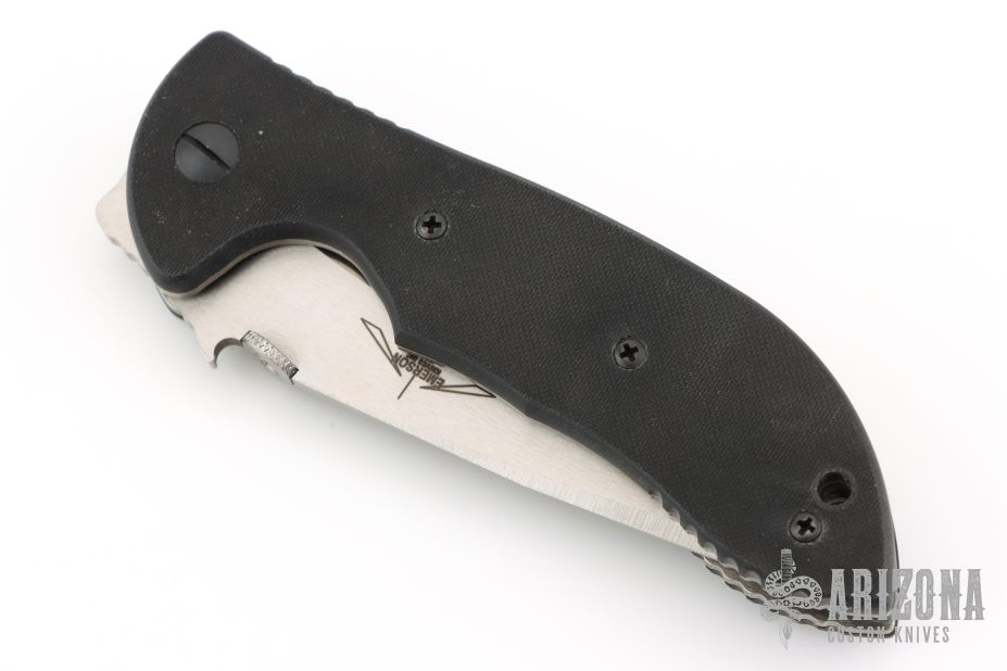This limited edition vintage Commander linerlock folder has a satin finished recurve blade and black G10 handle. Thumb disc and wave feature. Built to duplicate the famed heavy '98 Commander. Includes original box and paperwork. Excellent condition.