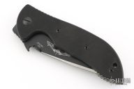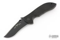 This limited edition vintage Commander linerlock folder has a two-tone satin and black recurve blade and black G10 handle. Thumb disc and wave feature. S/N 020 of only 25 that Ernie Emerson built to duplicate the famed heavy '98 Commander. Includes original box and paperwork. Excellent condition. 2008