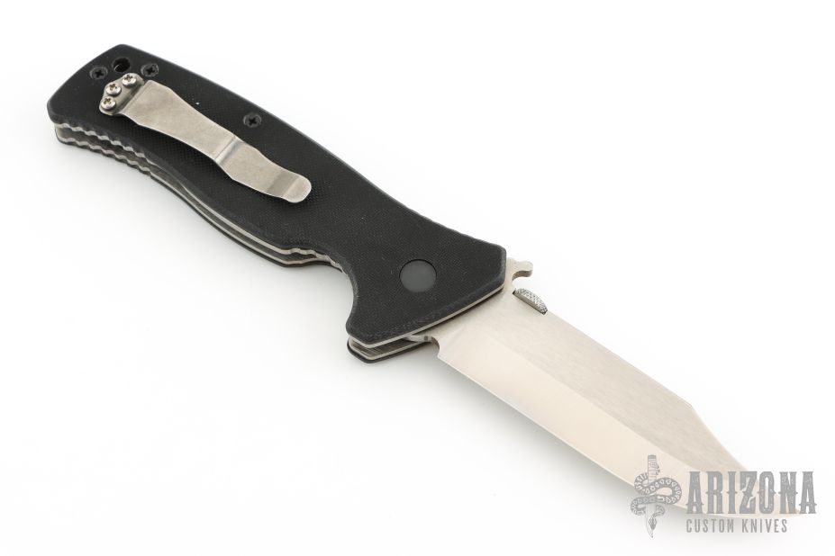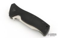 This knife by Emerson Knives features a satin finished clip point blade with thumbdisc and wave feature. The handle has black G-10 scales, titanium liners, black G-10 backspacer, and a tip up black stainless steel clip. Nice detent lockup and blade seating. Emerson Collectors Association Knife of the year, 2005 S/N 013. Comes with original box and papers. Excellent condition.