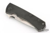 This A131 by Emerson Knives has a stonewashed blade with thumbdisc and wave feature. The handle has textured black G-10 scales, titanium liners, and a tip up stainless steel clip. Emerson Collectors Association Knife of the Year 2007 s/n 0014. Comes with original box and papers. Has some scratches on the clip, otherwise Excellent condition.