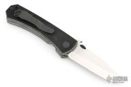 This A131 by Emerson Knives has a stonewashed blade with thumbdisc and wave feature. The handle has textured black G-10 scales, titanium liners, and a tip up stainless steel clip. Emerson Collectors Association Knife of the Year 2007 s/n 0012. Comes with original box and papers. Has some scratches on the clip, otherwise Excellent condition.