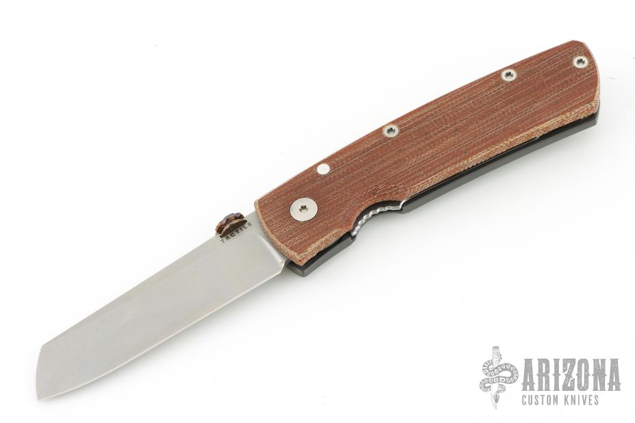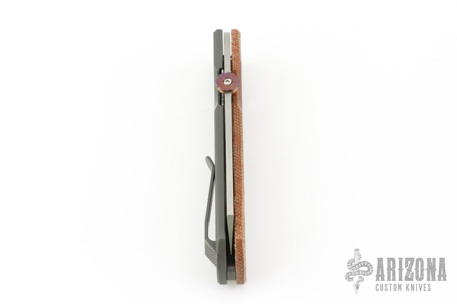 Comes with original box and card. This one has a micarta cover, and darkened titanium components. Has timascus thumb disc attached, and includes the original titanium one. Has a couple light scuffs and scratches, otherwise great condition.