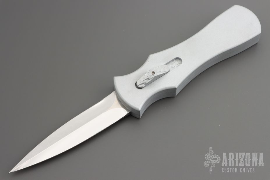 This Burn Palm Viper OTF has a hollow ground mirror polished dagger style blade. Matt finished aluminum chassis. Includes COA. Excellent Condition.