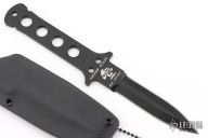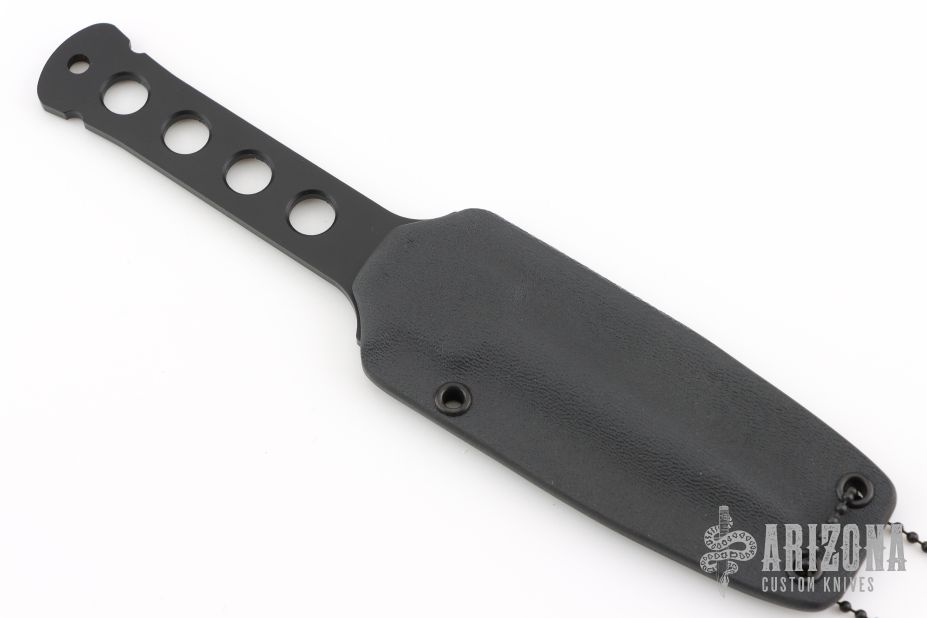 This Bad Intent USN Dagger by Emerson knives features a black double edged chisel ground blade, .130" blade stock and .746" blade depth, full tang construction. " USN 026" on back of blade. Comes with original Kydex neck sheath/chain, and bag/papers. Excellent condition.