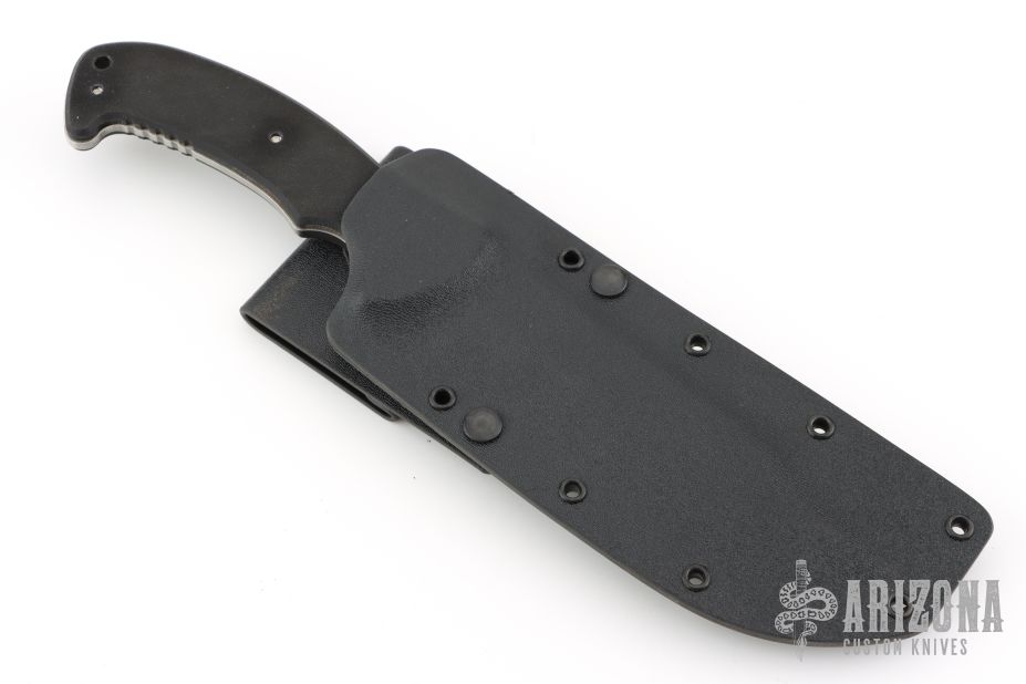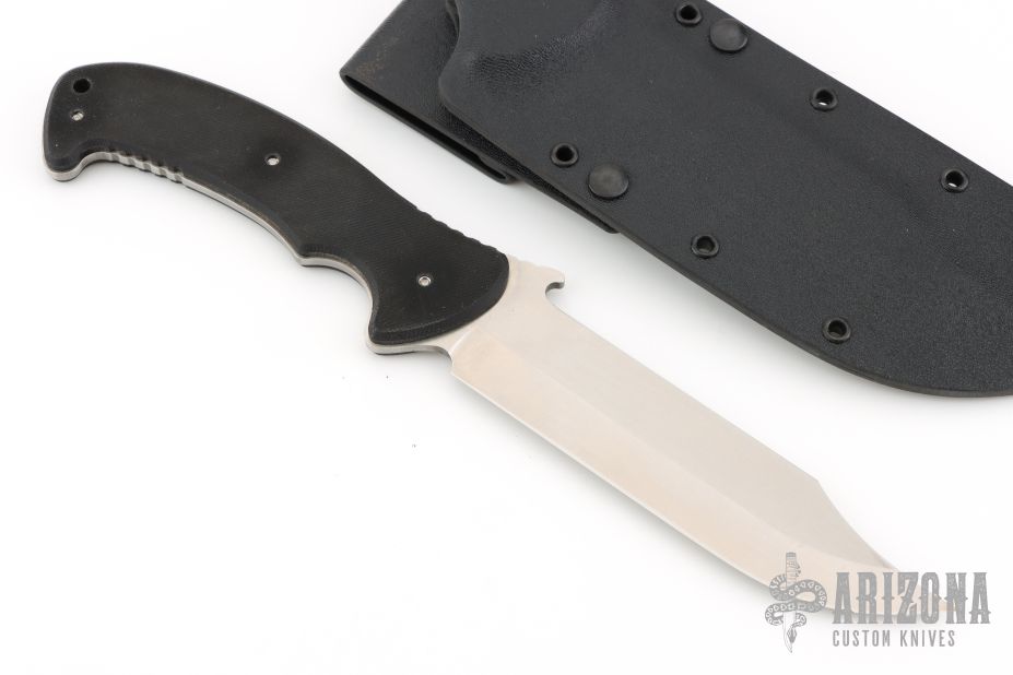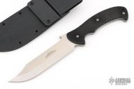 This Bowie Fixed Blade by Emerson Knives satin finished blade with a notched thumbrest, .122" blade stock and 1.231" blade depth, full tang construction. The handle has textured G10 scales. Comes with original kydex sheath and Emerson papers. Excellent condition.
