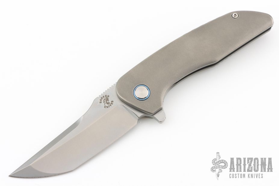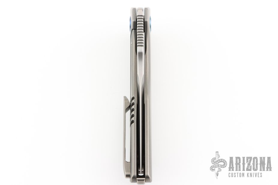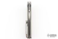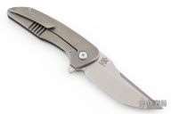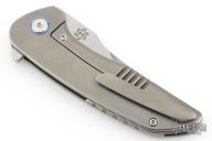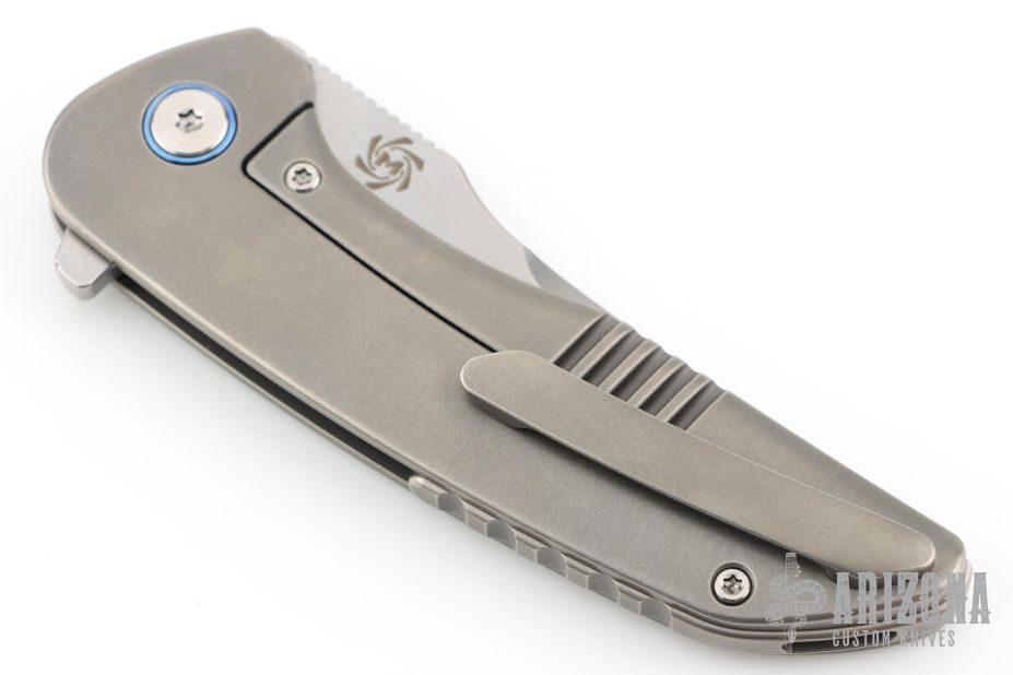 This Hokkaido by Mechforce features a stonewash finished tanto blade with notched thumbrest and flipper. The handle has a stonewash finished titanium frame with matching tip up clip and backspacer. Rides on bearings, nice detent, lockup and blade seating. Comes with original box and hard case. New from maker!