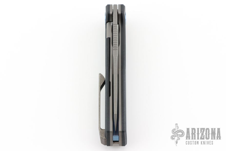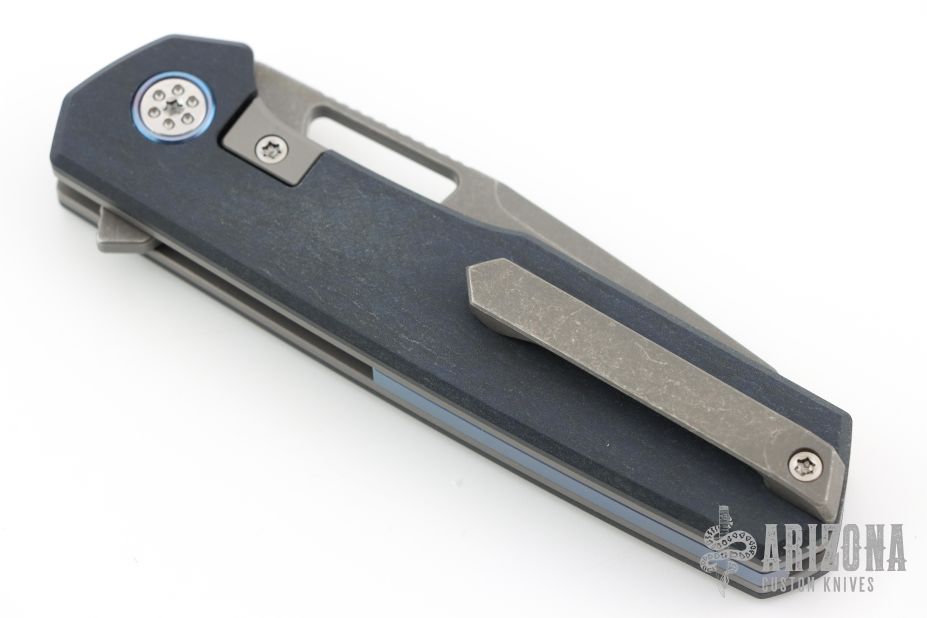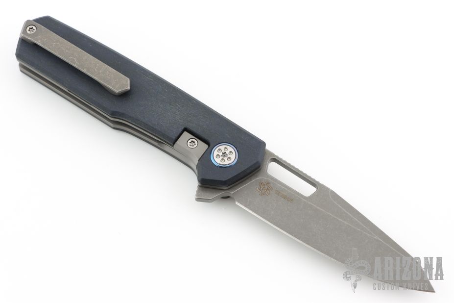 This Oeser Collab Nebo V2 by Mechforce features an acid stonewashed blade with thumbhole, notched thumbrest and flipper. The handle has Blue Canyon Richlite scales with a bead blasted titanium frame, blue anodized titanium backspacer and pivot collars, tip up stonewashed titanium clip. Comes with original box and hard case. New from maker!