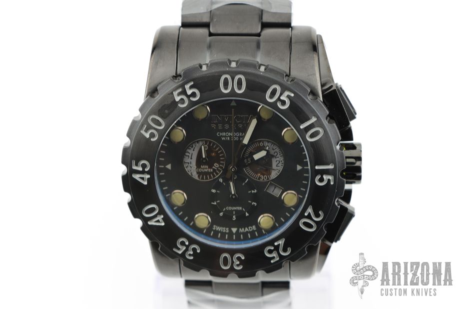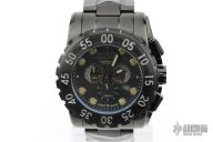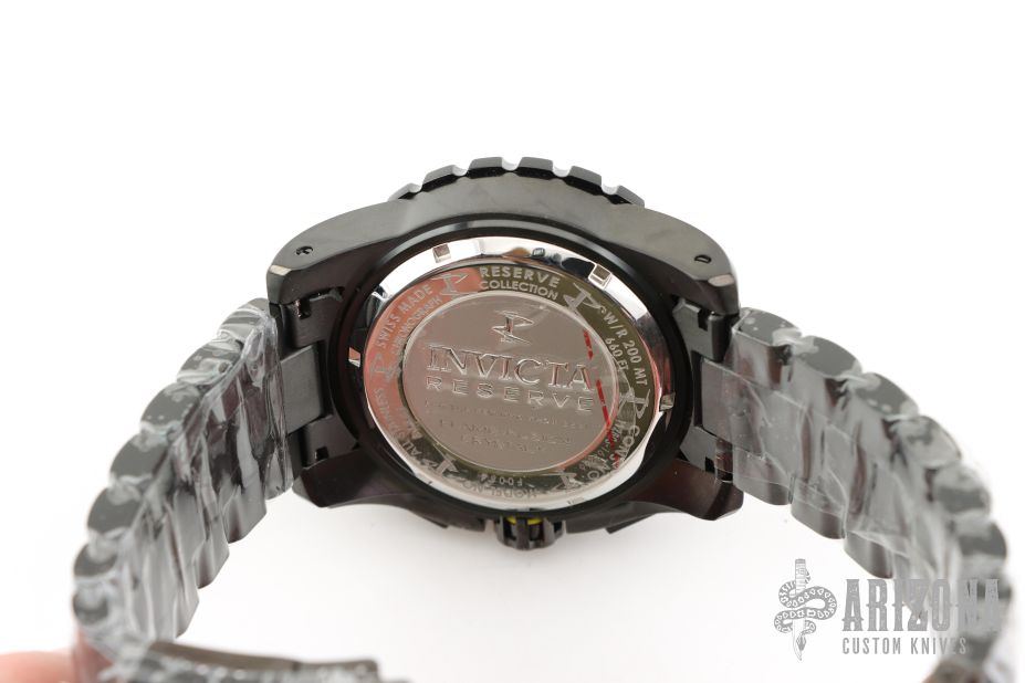This beautiful Invicta Specialty watch contains a precise Quartz movement in addition to a black case. Its face displays a black, metal dial protected by a highly resistant Flame Fusion Crystal. This timepiece is completed by a black, stainless steel band and it offers water resistance of up to 200 m.