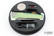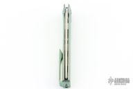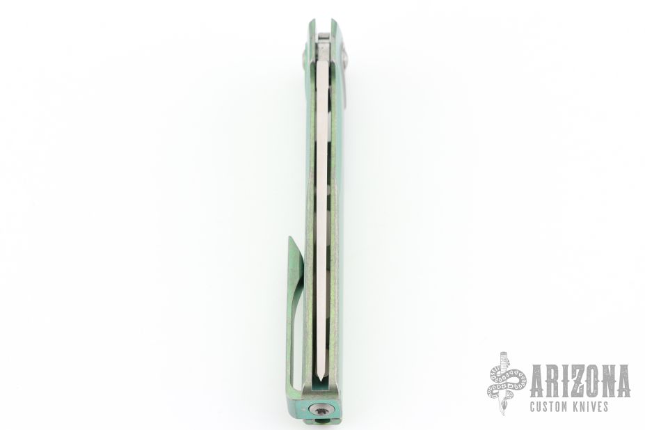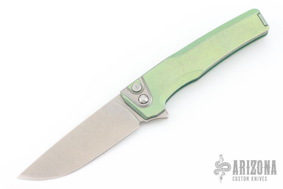 This Sonora by Machine Wise features a stonewashed blade with flipper tab. The handle is anodized titanium with a milled integral construction. Button lock open and closure, with L/R reversible tip up clip. Includes original 3D printed box, tool, lube and card. S/N 687. Excellent condition.
